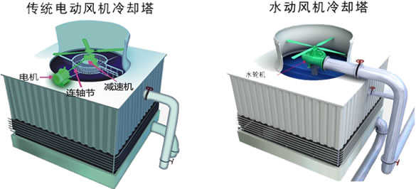 水輪機(jī)取代傳統(tǒng)冷卻塔中的電機(jī)、連軸節(jié)、減速機(jī)、達(dá)到節(jié)電效果